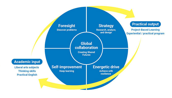 Through liberal arts courses, tools courses, and more, our curriculum promotes the acquisition of knowledge. Through practical class cycles of PBL and experiential/practical programs, students can then feel their growth accelerate.