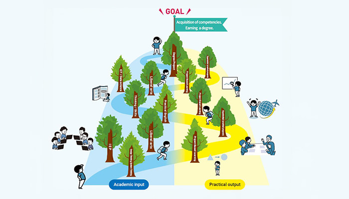 Also, by studying a wide range of liberal arts courses spanning the humanities and social sciences to the natural sciences, students can cultivate diversified perspectives that let them see matters in a comprehensive yet multifaceted manner, without losing sight of major trends. Furthermore, students engage in their field of interest in their "degree project" as the culmination of their learning, and by doing so, can dig deep into social issues to gain practical experience with finding solutions.