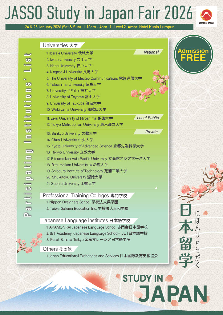 We will participate in the “Study in Japan Fair in Kuala Lumpur, Malaysia”!